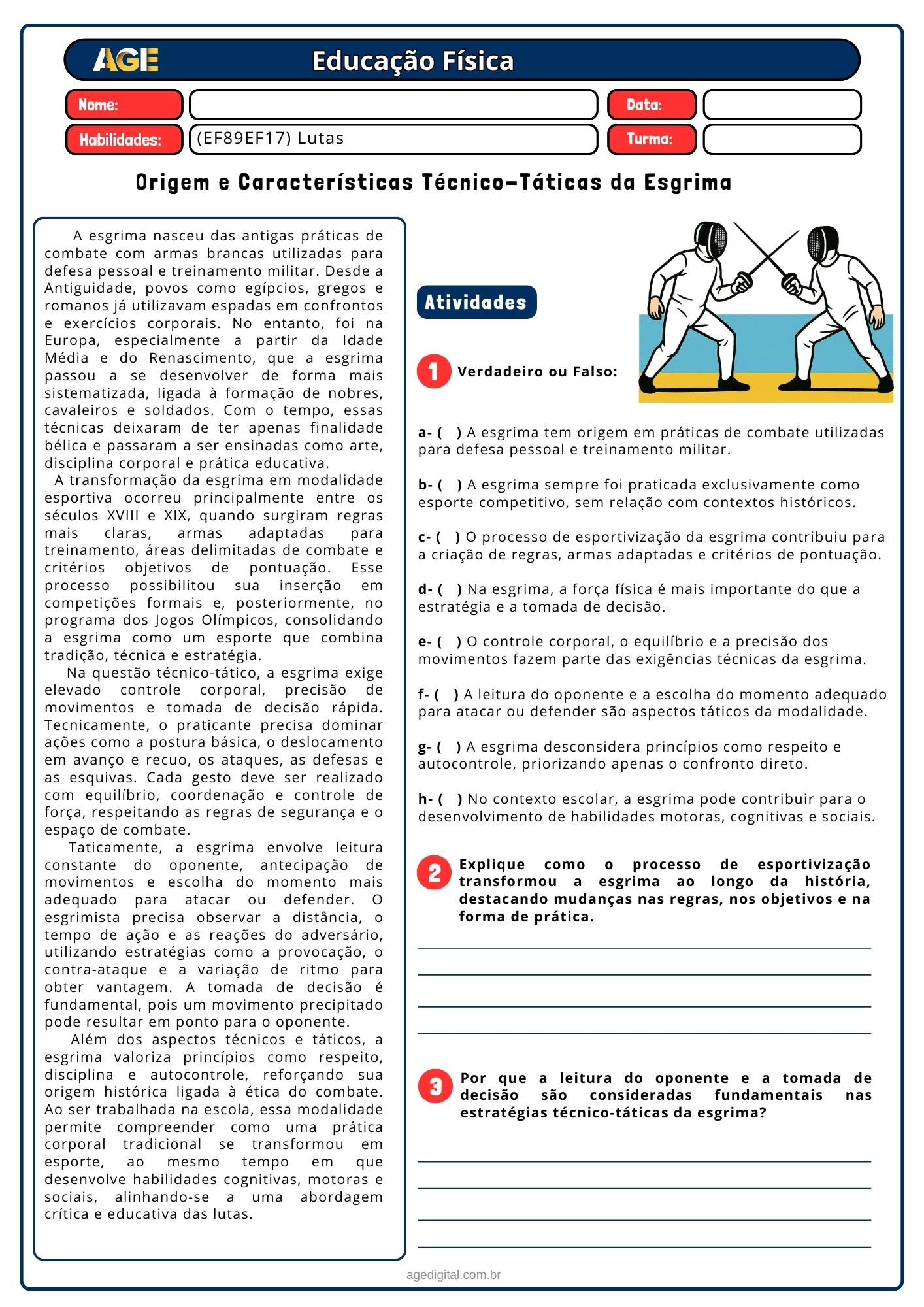 O Atividades Teóricas – Educação Física 2026 (8º e 9º Ano) é um material completo, aprofundado e atualizado, desenvolvido para apoiar o professor nos Anos Finais do Ensino Fundamental, com foco na compreensão crítica das práticas corporais, dos esportes e do movimento humano.