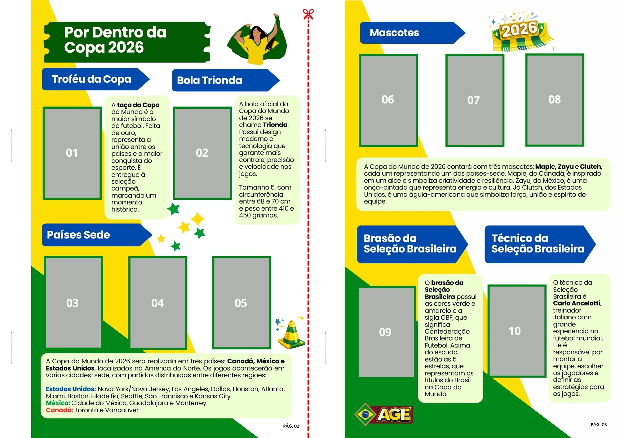 O Álbum Educativo da Copa – AGE Digital foi criado para transformar a aula em uma experiência diferente, onde o aluno aprende enquanto monta, interage e participa ativamente do processo.