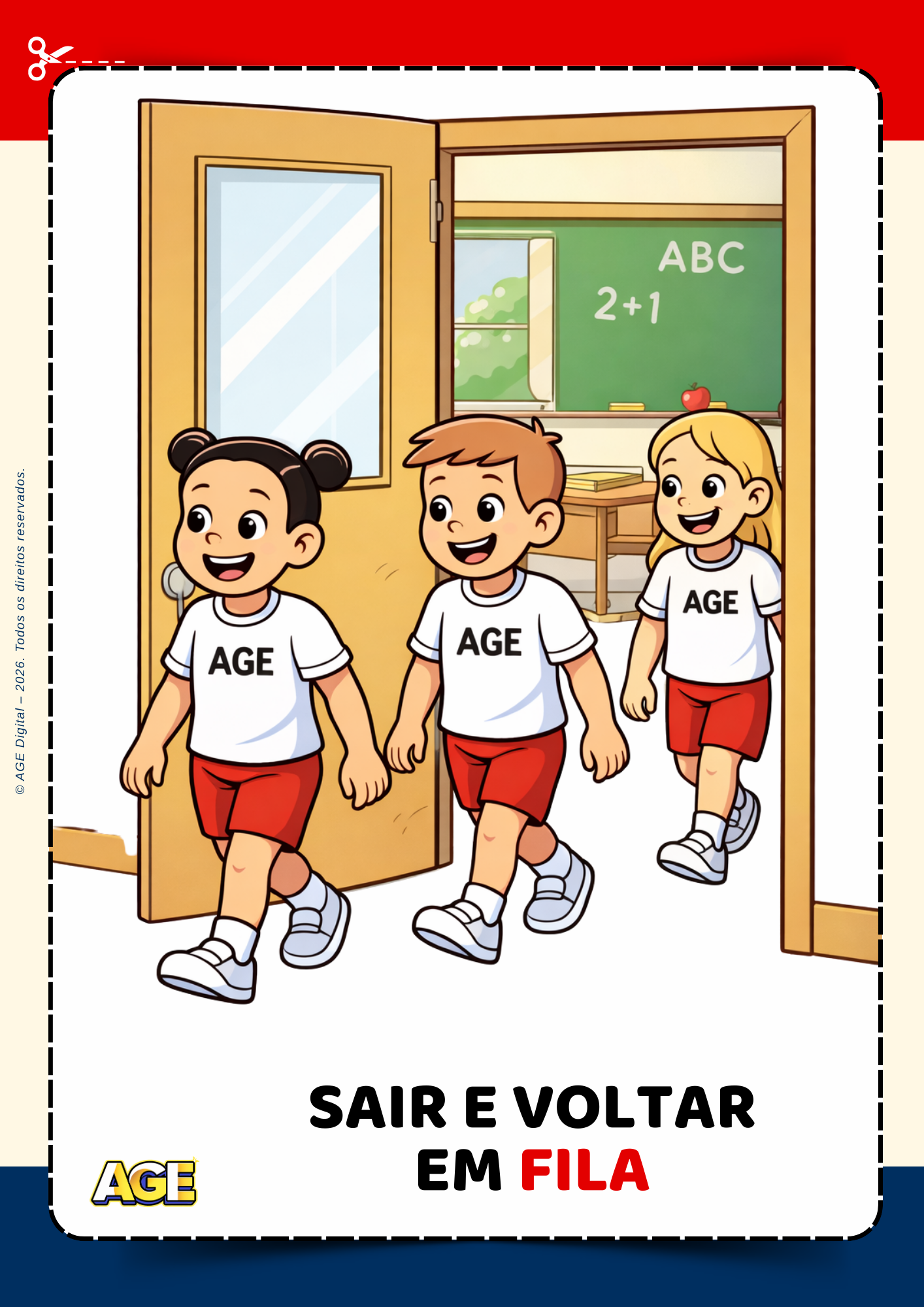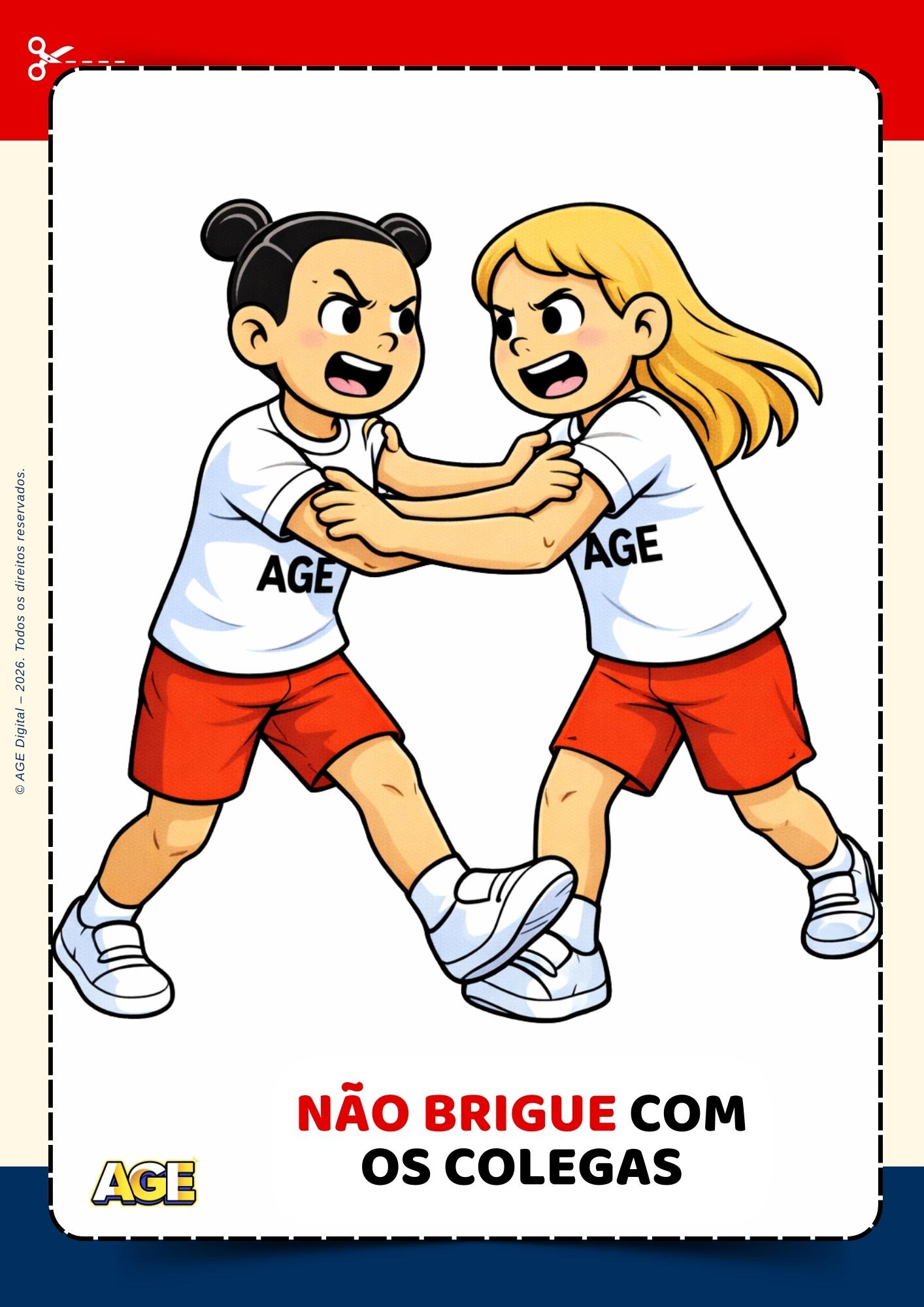 Desenvolvido especialmente para os Anos Iniciais, o material apresenta regras visuais, simples e acessíveis, facilitando a compreensão das crianças e fortalecendo atitudes de respeito, cooperação, cuidado e responsabilidade coletiva.